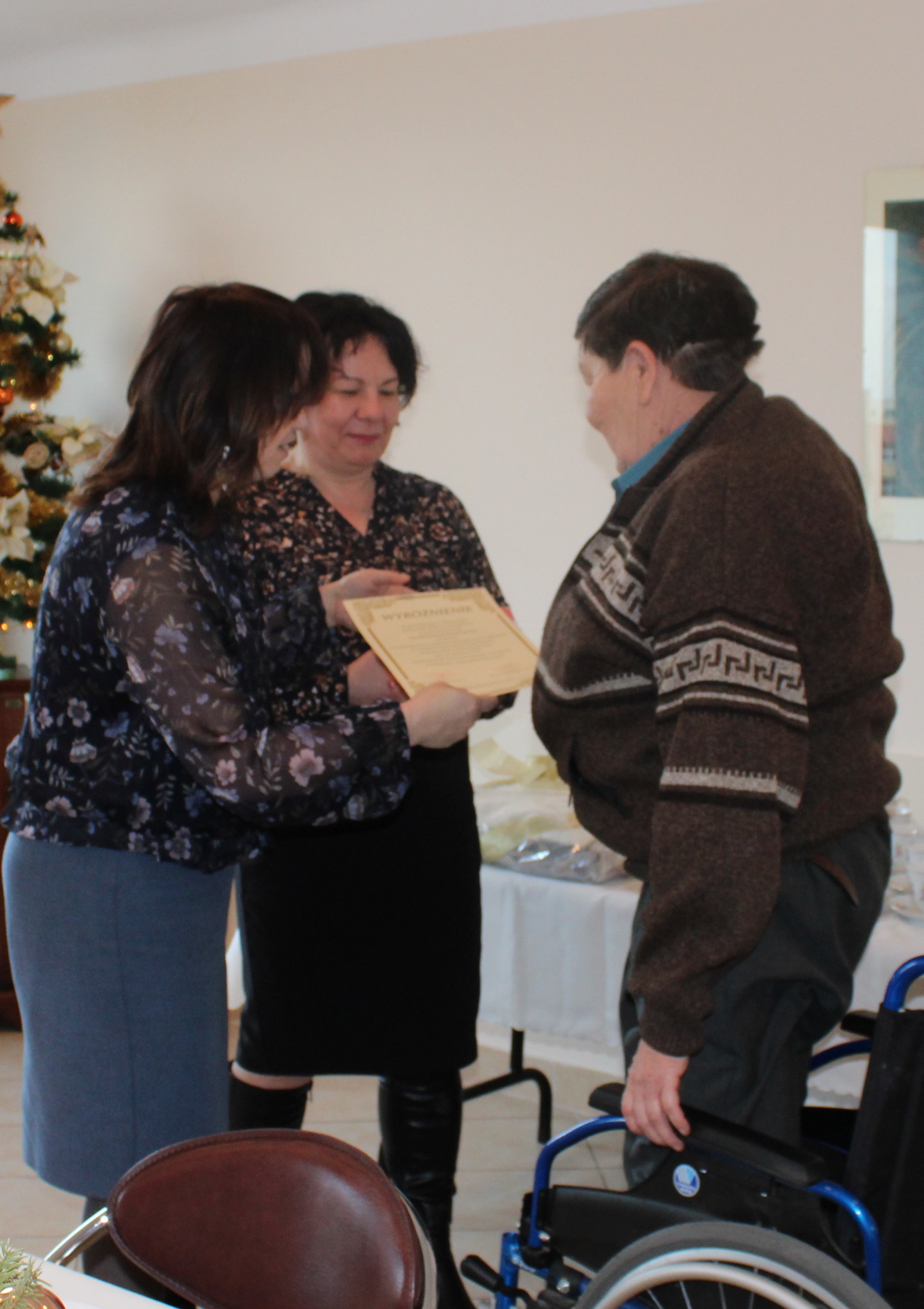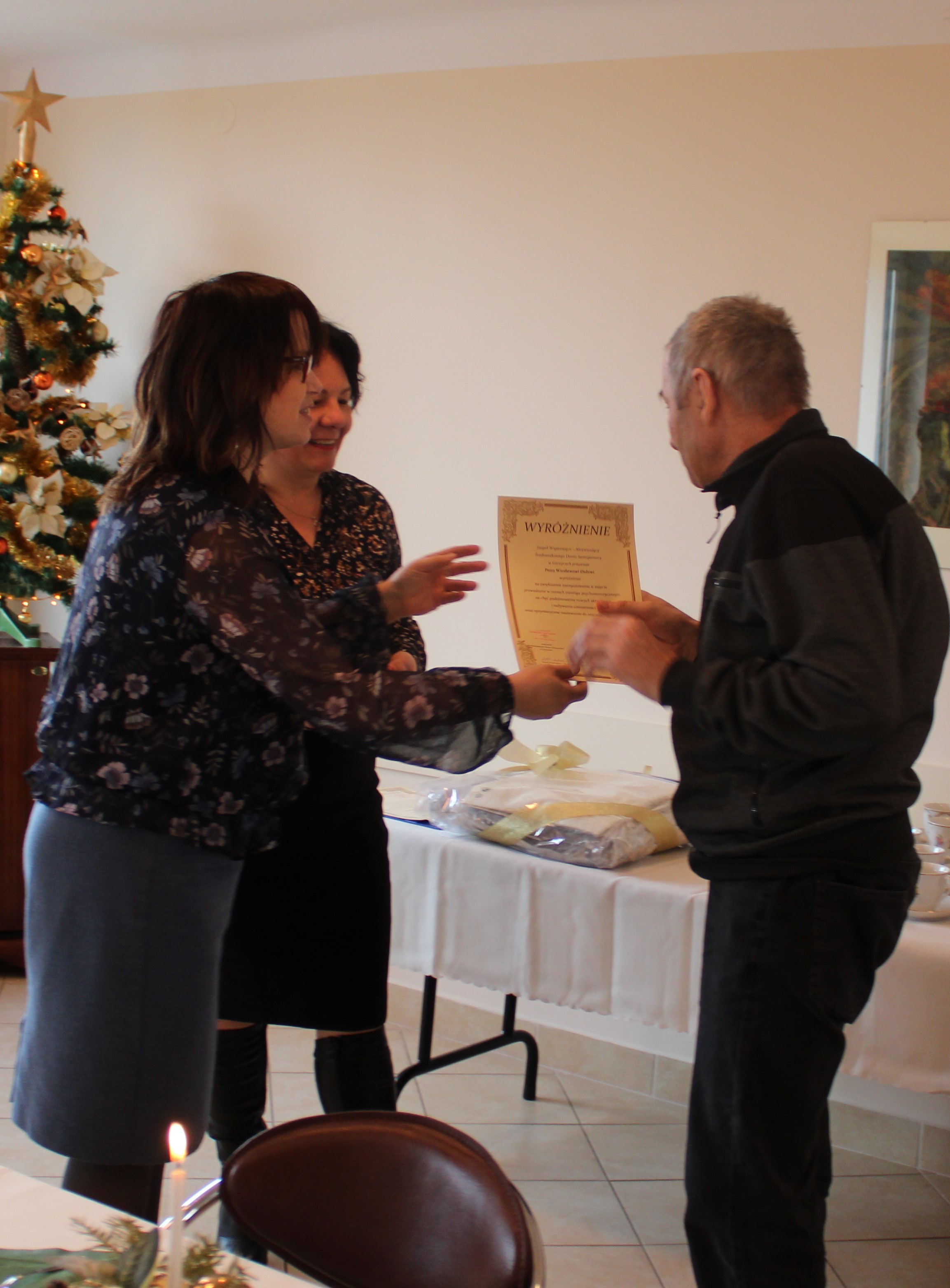 Uroczystość rozpoczęła się od powitania wszystkich przez Panią Kierownik, Gabrielę Mazur. Następnie przedstawiona została prezentacja multimedialna, która przypomniała nam ważne wydarzenia z minionego roku.  Następnie gość honorowy, a  Pani Ewa Kędzierska Kierownik Powiatowego Centrum Pomocy Rodzinie w Tarnobrzegu wręczyła uczestnikom dyplomy i upominki za pracę i osiągnięcia w roku 2019. Wyróżnienia otrzymali: Pani Stanisława, Pani Ryszard, Pan Józef, Pan Wiesław oraz Pan Janusz. Tytuł „Uczestnika Roku 2019” oraz nagrodę rzeczową zdobyła Pani Kazimiera. Po części oficjalnej uczestnicy brali udział w zabawach tanecznych przy muzyce.